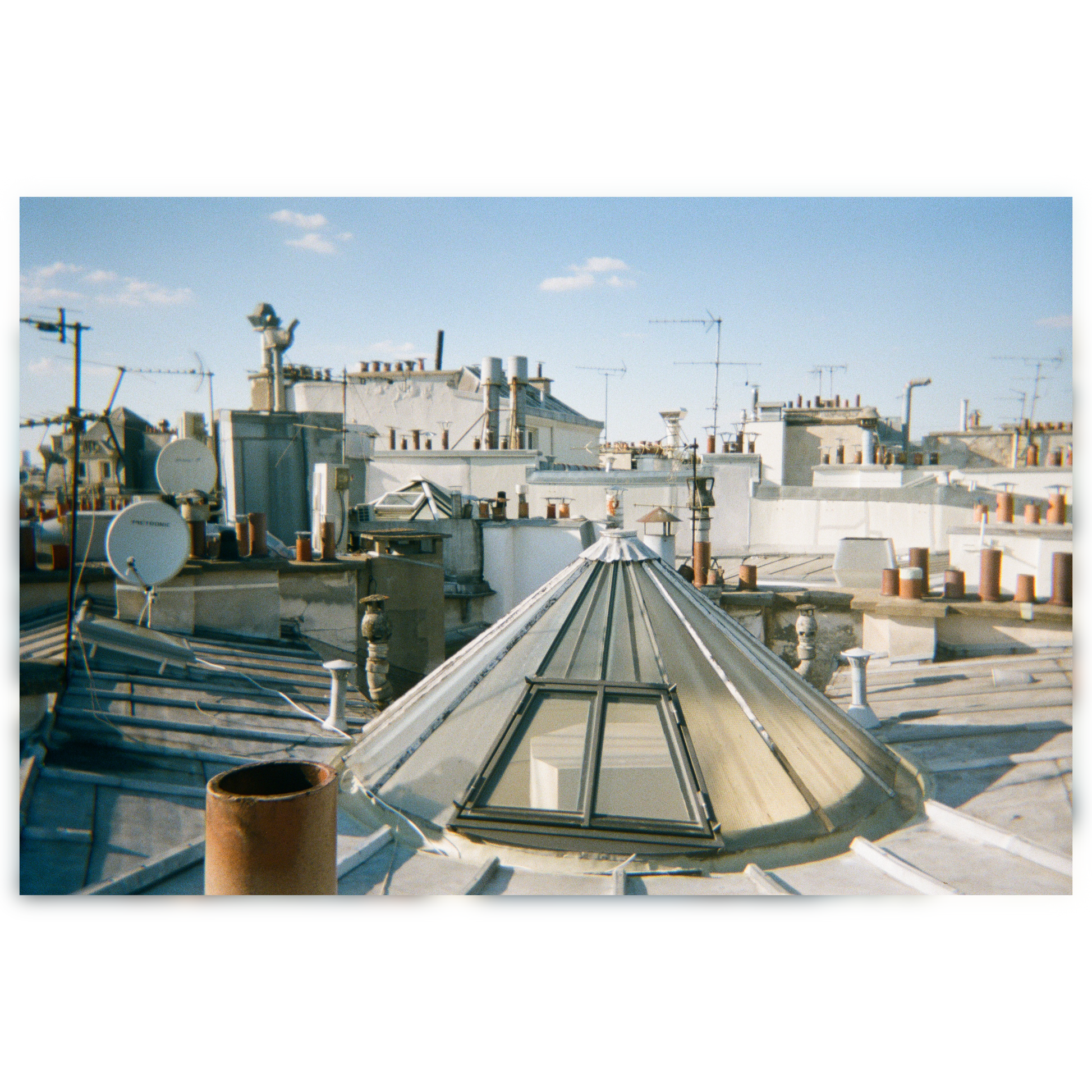 Capturées lors de balades silencieuses sur les toits de Paris, elles restituent la magie brute de l’instant : une lumière fragile, un vertige contenu, une présence discrète dans l’immensité parisienne.